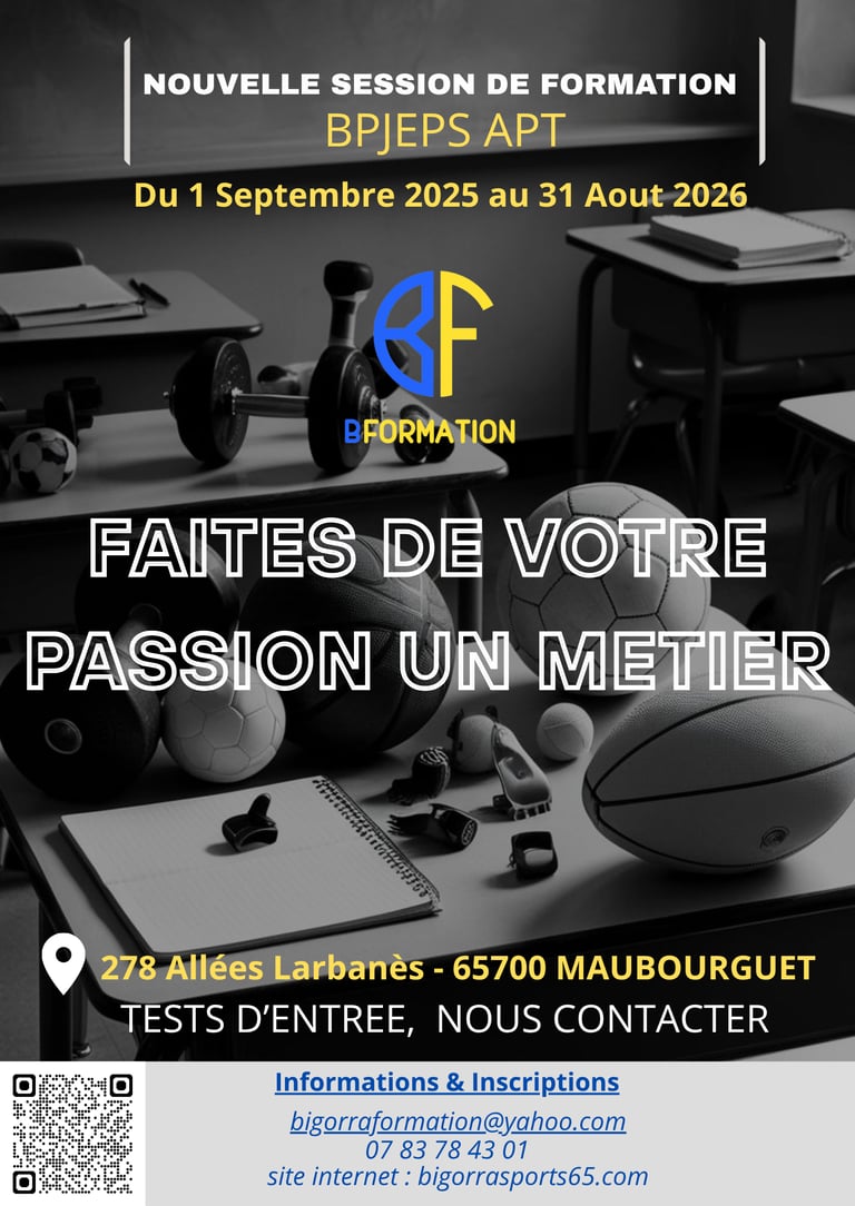 ”La formation BPJEPS APT à Bigorra Sports 65 est encadrée par des formateurs très professionnels et très engagés, soucieux de notre réussite et très à l’écoute. Cette formation nous fait découvrir beaucoup de disciplines variées. Je suis ravi de mon année passée au sein de cet organisme de formation."